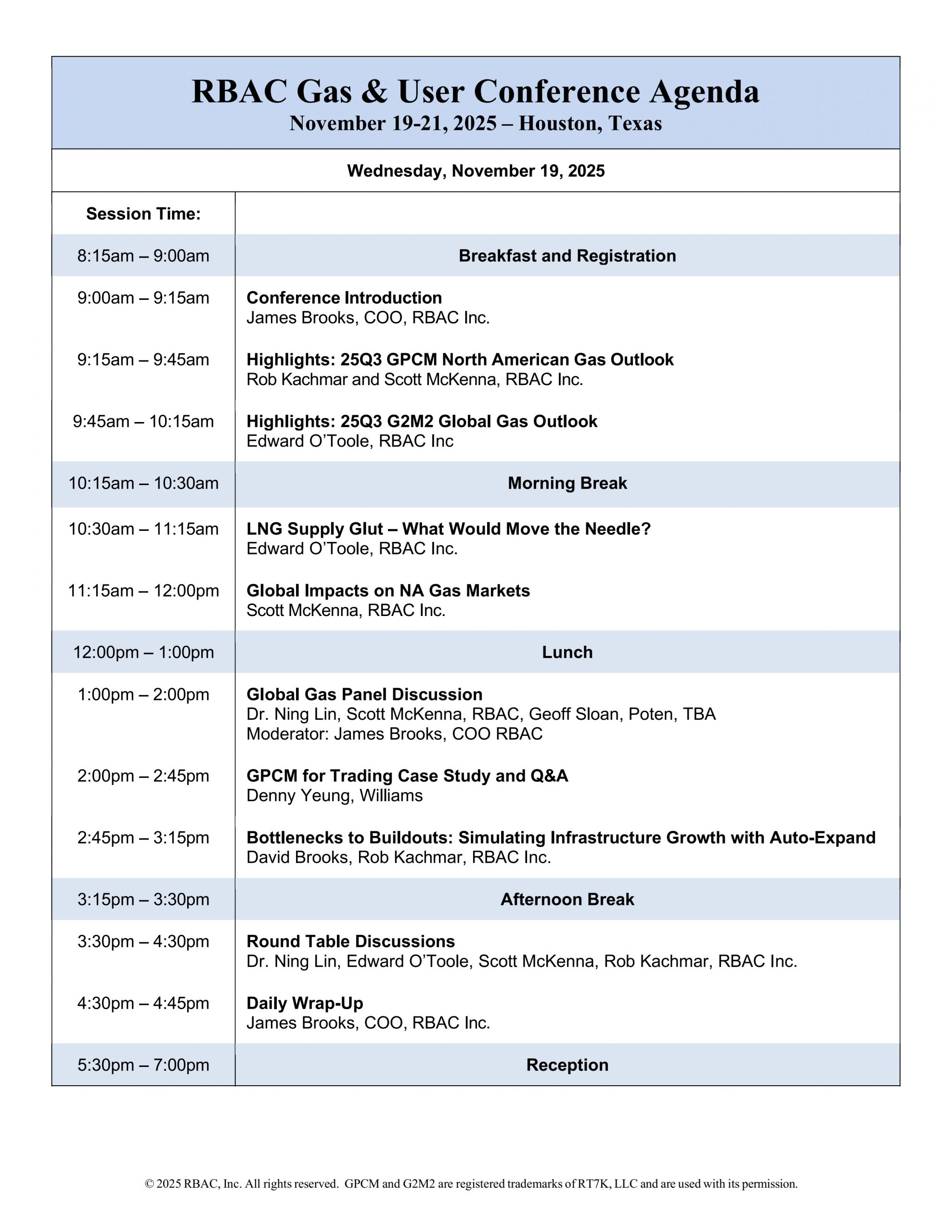 Join us in Houston, November 19–21, for the RBAC Annual Gas & User Conference.