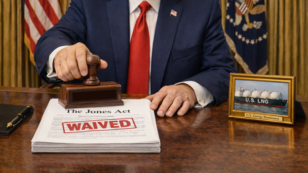 - Thus, what would work is a concurrent, front‑loaded “swarm” of vessel‑specific waivers (LNG and fuels) targeted at isolated markets. In other words, you would have to have a mass waiver filing (“swarm”) for LNG and fuels, targeted to constrained regions. Shippers file vessel‑specific waiver requests for LNG (Gulf → New England [would have been great before the winter storms]), gasoline/diesel/jet (Gulf → California/Hawaii/Puerto Rico), etc. This is especially impactful for LNG because the U.S. has no Jones Act–compliant LNG tankers. [LNG and the Jones Act]