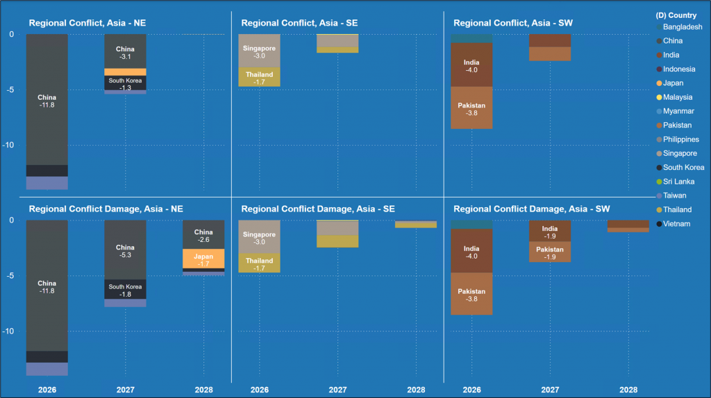 The expected increase in spot prices as importers scramble to replace the lost supply is likely to lead to a reduction in demand from more price-sensitive segments of Asian gas consumption. This is shown in Figure 2, below. As a result, China and South Asia are expected to absorb the majority of the reduction in global supply across all scenarios. This would mirror the reaction to other sudden phases of market tightness in recent years. In the Regional Conflict and Regional Conflict Damage scenarios especially, Pakistan sees the most significant relative reduction in total LNG imports. This may result in supply curtailments and an energy emergency in the country in 2026. A similar crisis may also be triggered in Bangladesh given the significance of Qatari LNG imports in the country’s gas supply mix.
